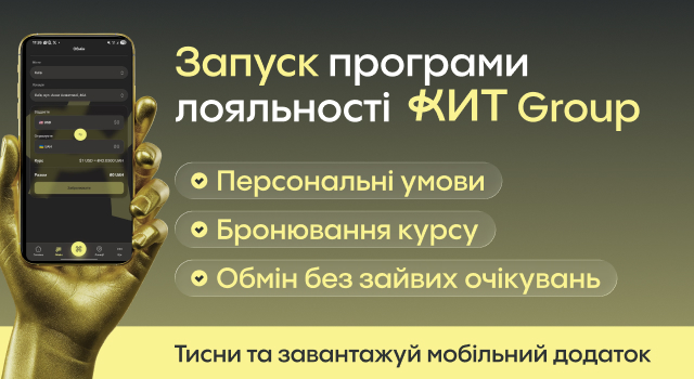 *Діючі умови купівлі-продажу іноземної валюти встановлюються згідно з наказами/розпорядженнями уповноважених осіб фінансових установ-партнерів Програми лояльності КИТ Group, розміщеними виключно у касах відповідних фінансових установ, наділених ліцензією Національного банку України на торгівлю валютними цінностями в готівковій формі.
